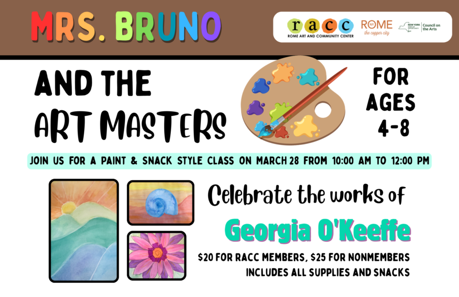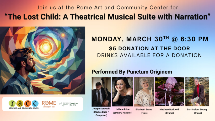 Rome Art and Community Center 308 West Bloomfield St., Rome, NY, United StatesJoin us at the RACC for the “Capturing Stillness” Opening Reception! Thursday, January 8th | 6:00 PM – 8:00 PM “Capturing Stillness” is a free, open-call, non-juried, salon-style group art exhibition that brings together a diverse group of artists exploring the timeless genre of still life through contemporary perspectives. Each work transforms ordinary objects—fruit, flowers, […]