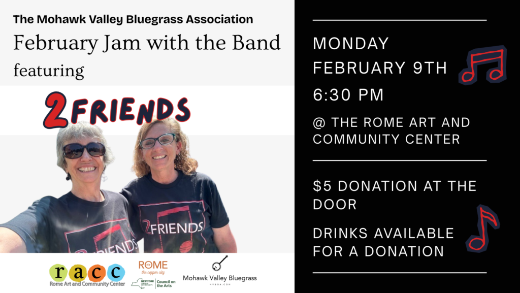 Bring your instrument and join in on the jam—or just come to enjoy the music and the warm, welcoming vibes. It’s a great opportunity to meet fellow musicians, learn new tunes, and celebrate the shared love of bluegrass in the Mohawk Valley.